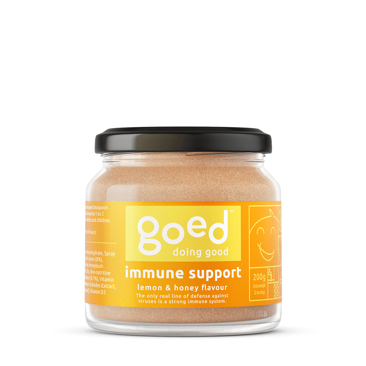 goed™ Immune Support products have been developed by a top South African Biochemist. This range of functional powdered beverages are packed with high quality plant-based botanicals and vitamins.